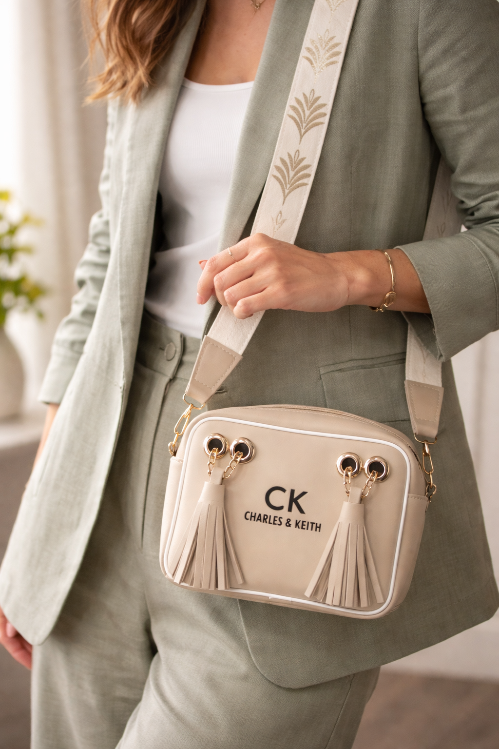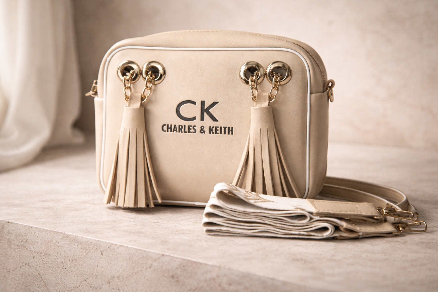 The "Tassel Chic" bags from Charles & Keith bring elegance and style with their modern and sophisticated designs. These bags feature luxurious details such as gold-tone hardware and chic tassels that add a touch of refinement to any outfit. Available in both neutral tones, the bags are perfect for everyday use while making a statement. Whether in soft beige or classic black, these stylish accessories combine versatility and fashion-forward appeal, making them an essential part of any wardrobe.